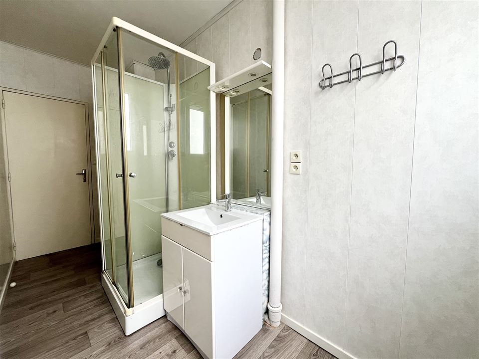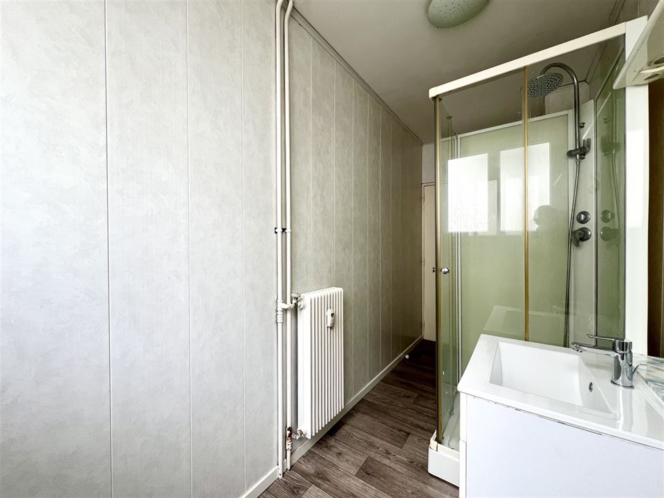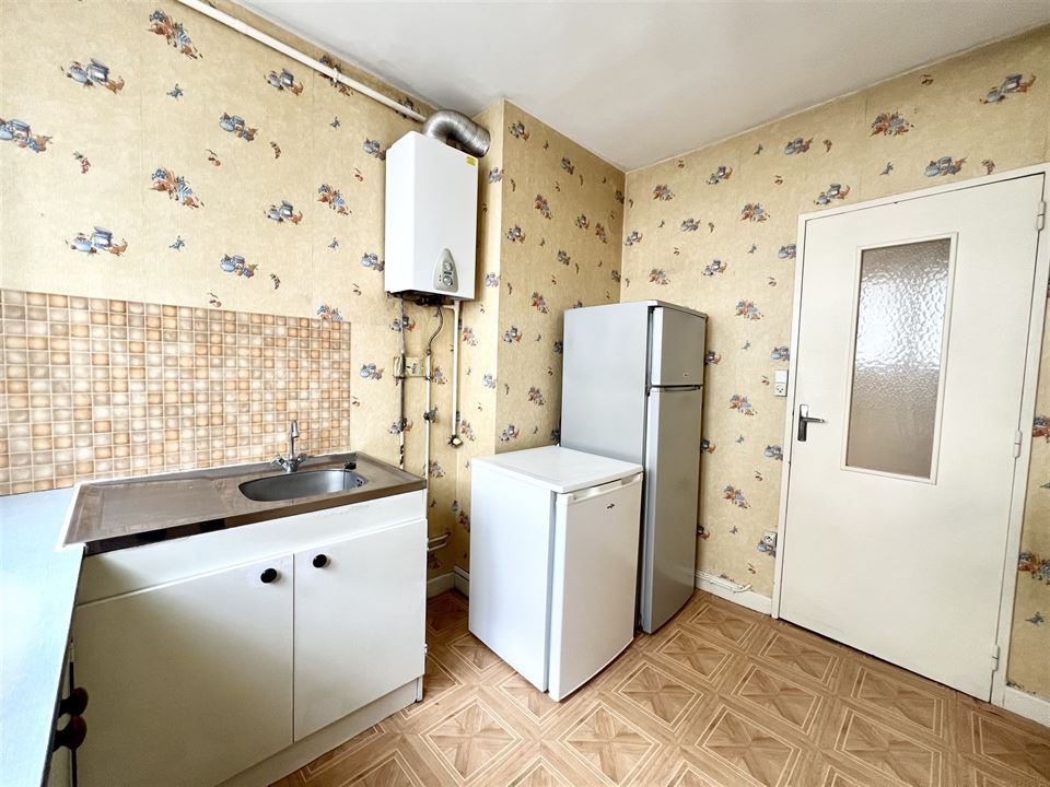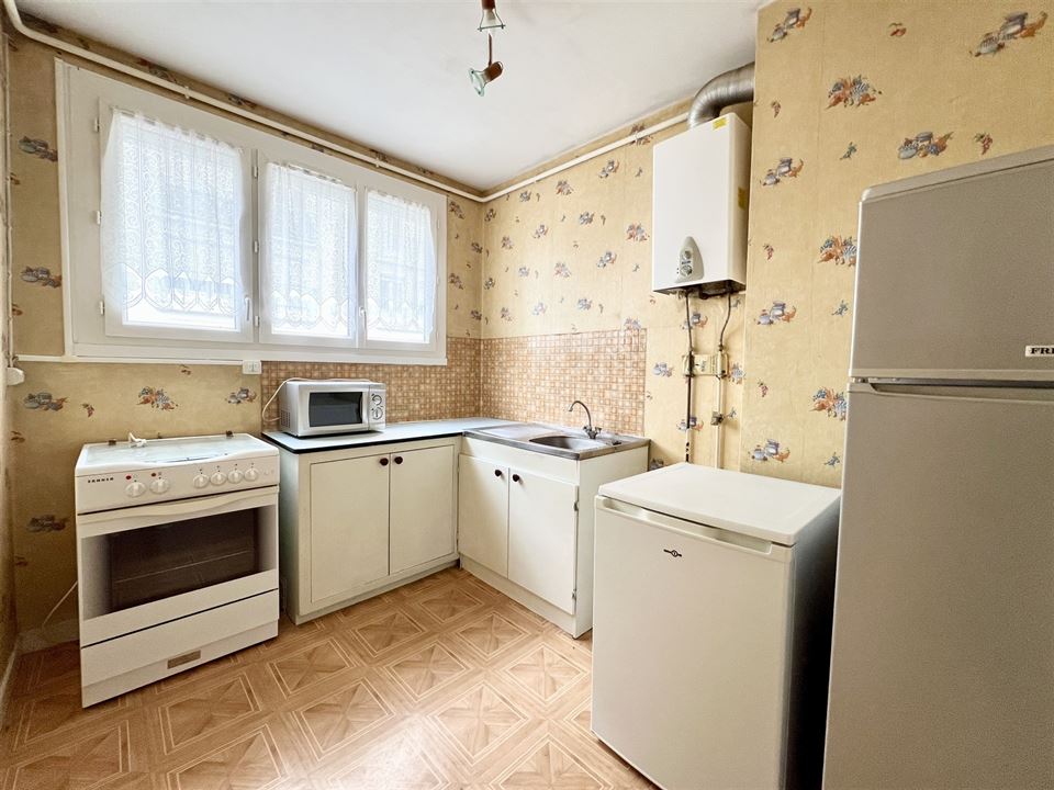 Situé au premier étage d’un immeuble résidentiel bien entretenu, ce bien à rafraîchir bénéficie déjà de quelques améliorations de confort, notamment des châssis en double vitrage PVC et des volets roulants électriques, garantissant luminosité et isolation thermique optimale.