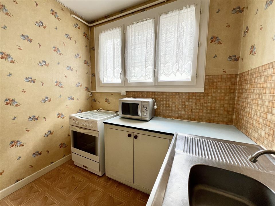 L’appartement se compose d’un hall d’entrée avec WC séparé, d’une cuisine à aménager selon vos goûts, d’un séjour lumineux, d’une salle d’eau à réinventer, d’un débarras et de deux chambres confortables. Deux caves privatives viennent compléter ce bien, offrant des espaces de rangement pratiques et sécurisés.