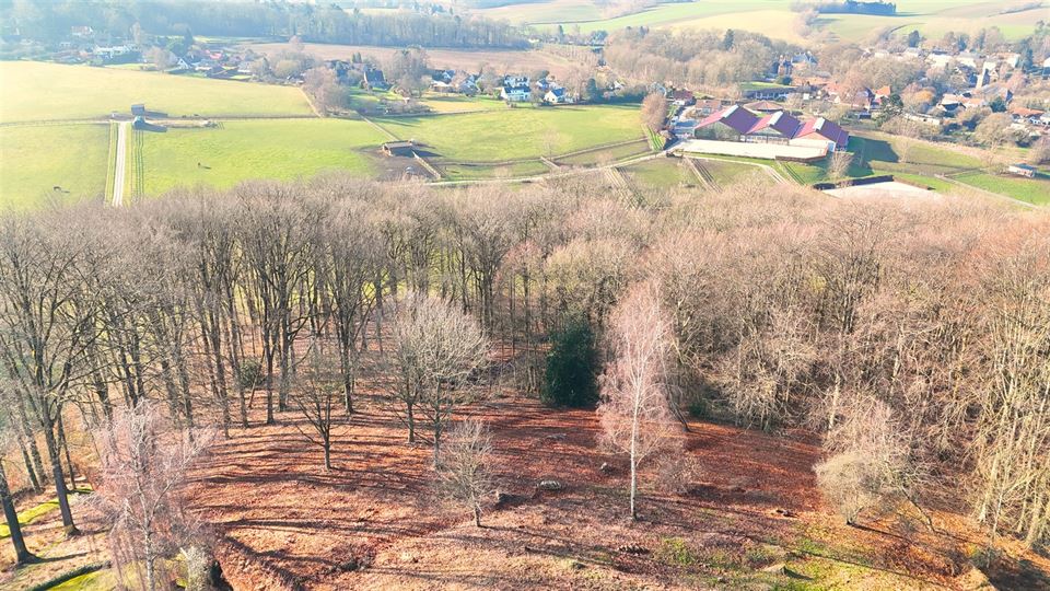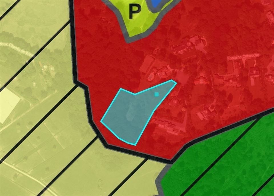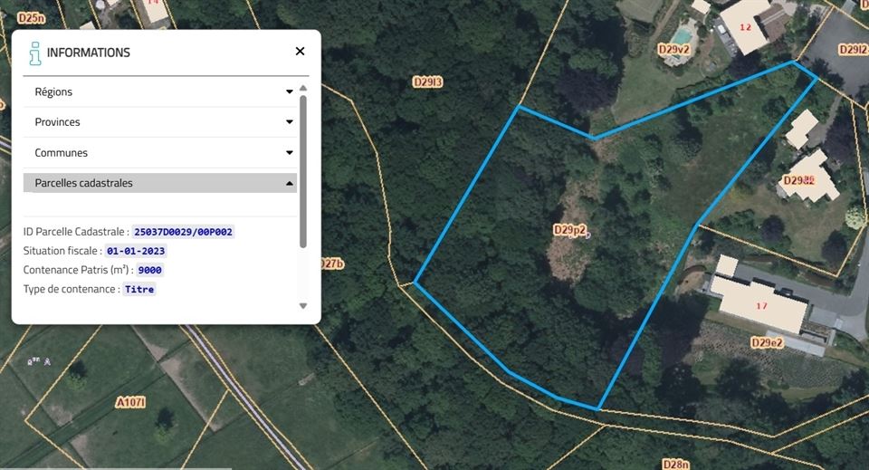 Les 9000m² sont repris entièrement en zone d'habitat, avec environ 25 ares plats et le surplus en pente en partie boisée, offrant une vue plongeante vers la vallée et les prairies environnantes, le tout parfaitement orienté sud-ouest.