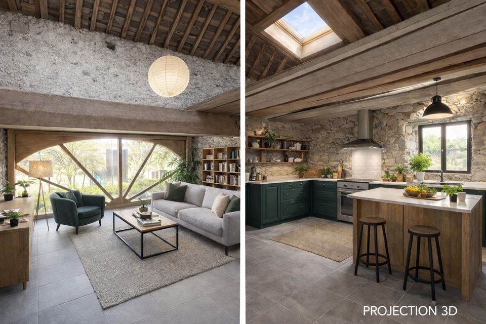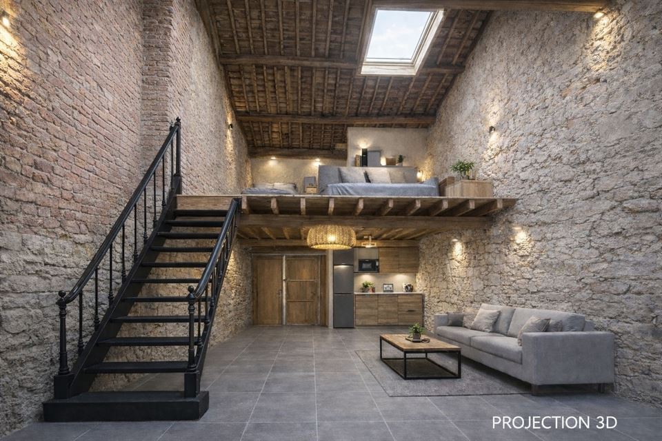La grange, actuellement aménagée en garage avec une mezzanine, offre la possibilité de créer un étage supplémentaire pouvant ainsi apporter au bien un espace indépendant de près de 100m² (atelier, stockage, profession libérale, logement etc.). À l’extérieur, vous bénéficiez d’un parking pouvant accueillir jusqu’à 3 voitures et un agréable jardin.
