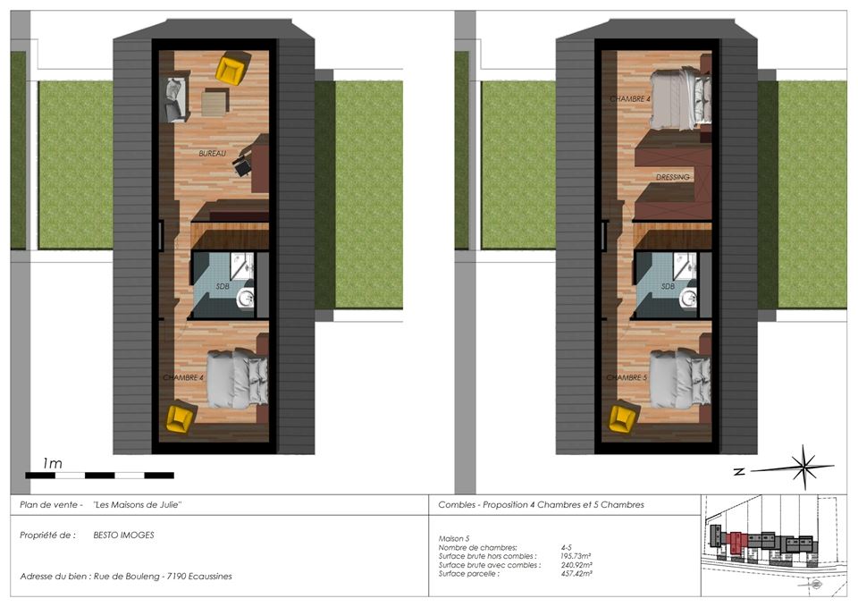 Des combles sont disponibles avec possibilité d'aménagements : suite parentale, chambres et salle d'eau supplémentaires.