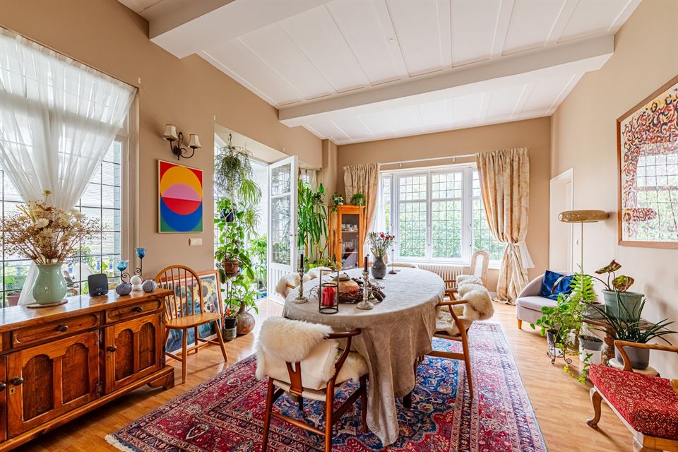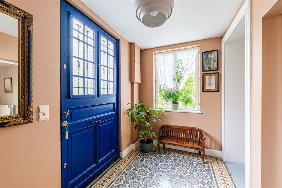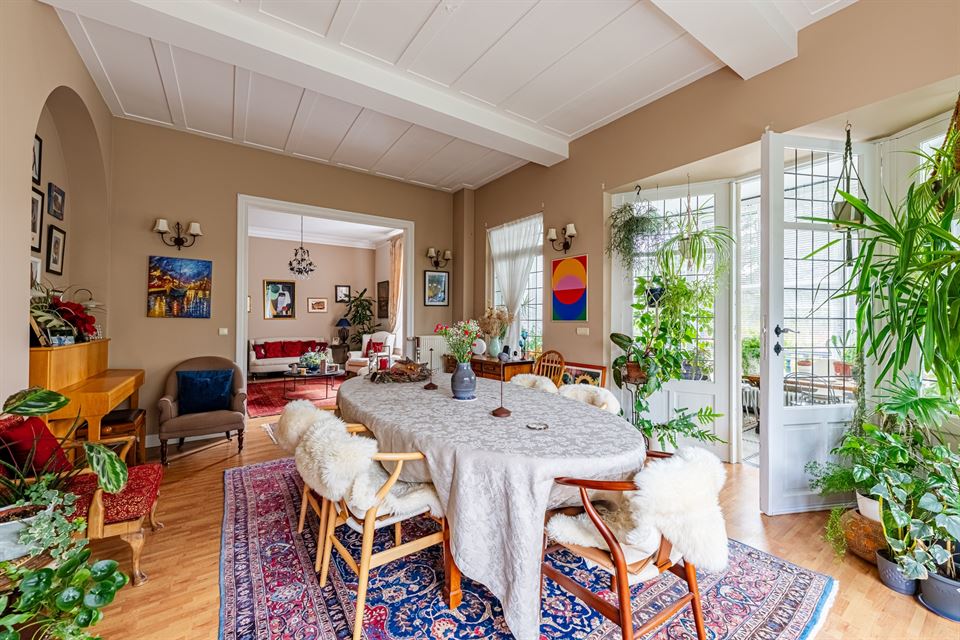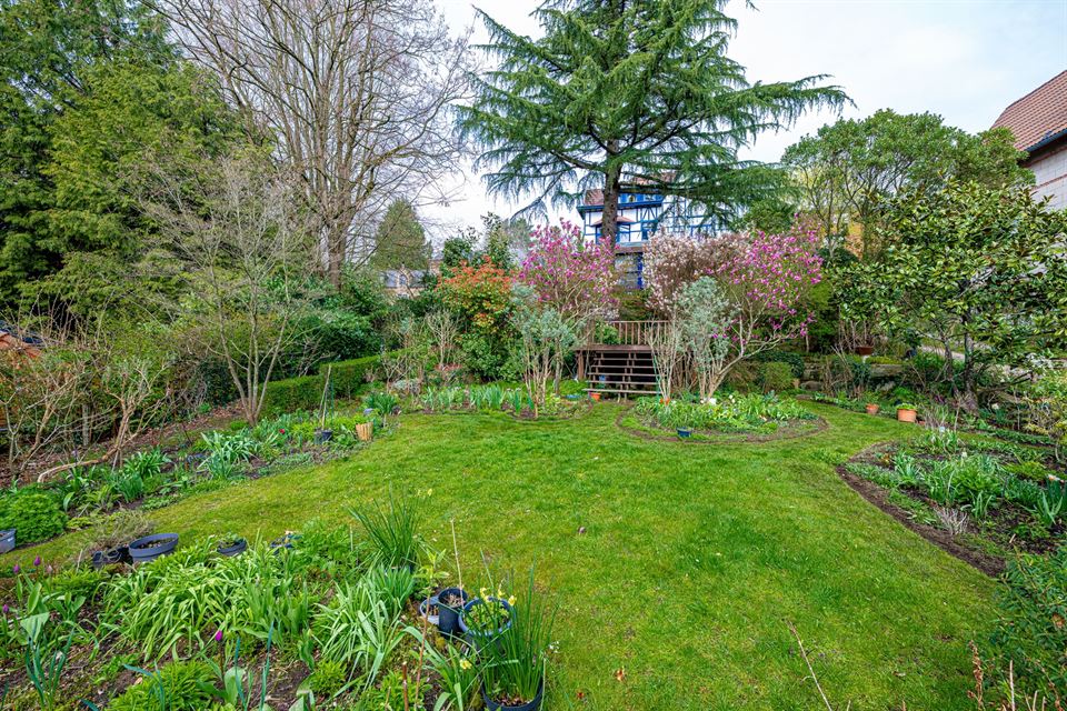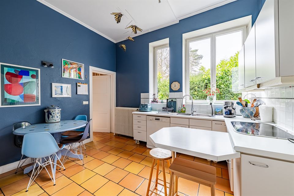 Dès l'entrée, la maison offre un hall d'entrée accueillant, et de superbes réceptions d'environ 75 m² avec feu ouvert fonctionnel. Ces espaces de vie lumineux s'ouvrent harmonieusement sur un charmant jardin d'hiver, véritable transition avec le somptueux jardin paysager, idéal pour les moments de détente et de convivialité. La cuisine entièrement équipée est complétée par un cellier.