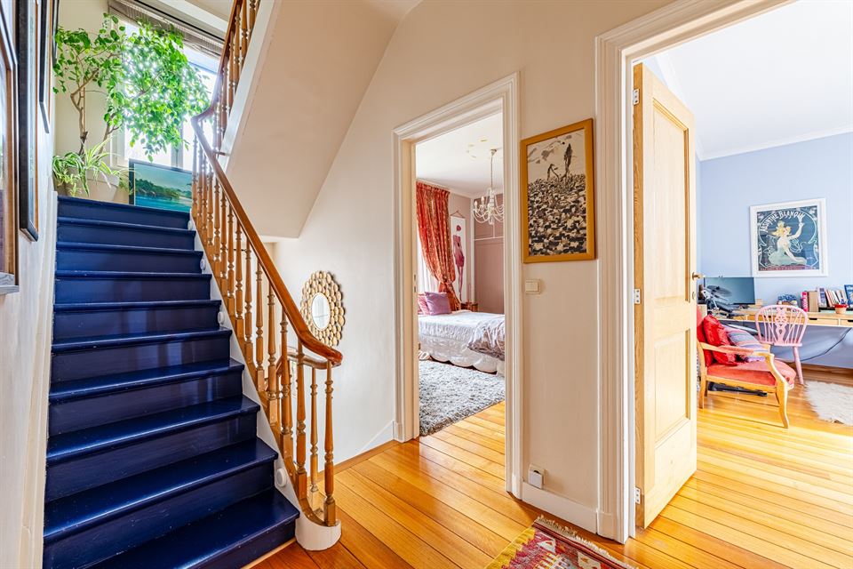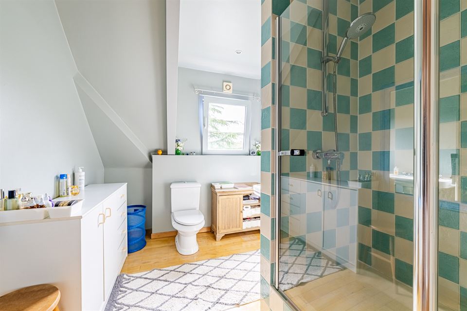 Au premier étage, vous découvrirez trois belles chambres à coucher avec parquet, dont une spacieuse suite parentale avec salle de bains et toilettes attenantes, et accès direct à une agréable terrasse avec vue imprenable sur le jardin. Une deuxième salle de bains avec WC complète ce niveau.
