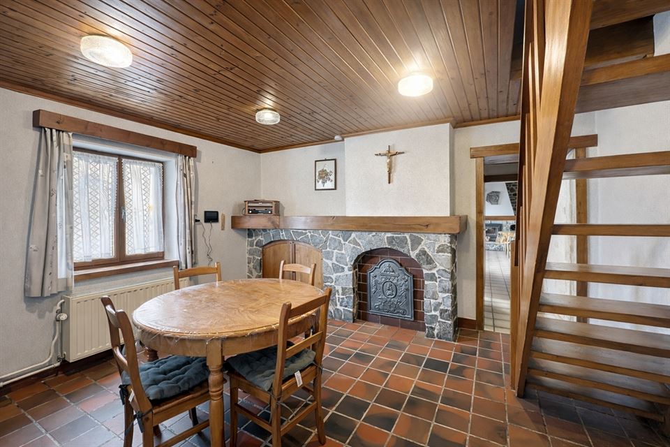 Découvrez cette agréable maison, à rafraichir, d'environ 150m², située à proximité des écoles, commerces, transports en commun,... Implantée sur un terrain de 21 ares, elle séduira les amateurs d'espaces verts et de tranquillité avec son jardin offrant des vues dégagées, une terrasse intimiste et une vigne. Elle offre un hall d'entrée, un bureau, une salle à manger, une cuisine, un spacieux salon avec poêle à bois, un hall de nuit, 4 chambres, une salle de douche, 2 coins lavabos. Elle dispose également de différentes remises pouvant servir d'atelier et 3 garages.