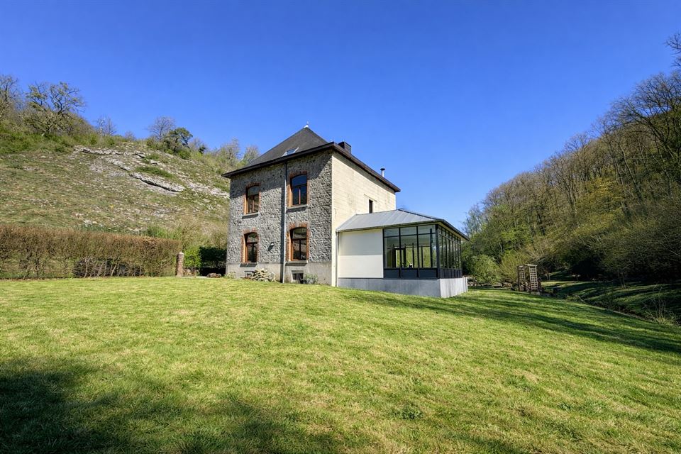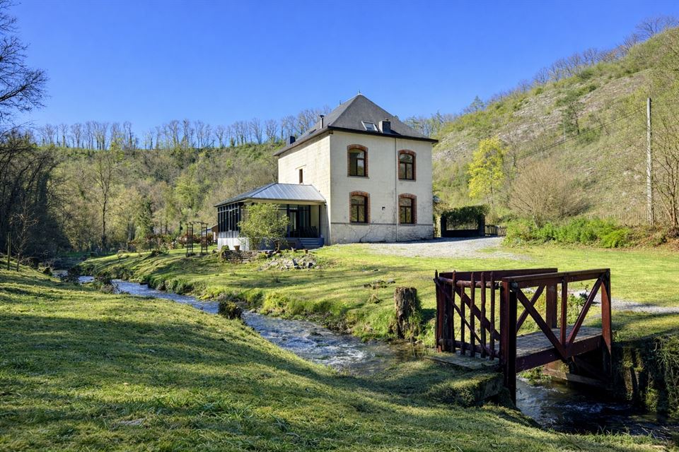 Propriété de caractère entièrement rénovée, implantée sur un magnifique terrain d'environ 60 ares bordé par un ruisseau et offrant un cadre bucolique rare à proximité immédiate de l'abbaye de Leffe et du centre de Dinant.