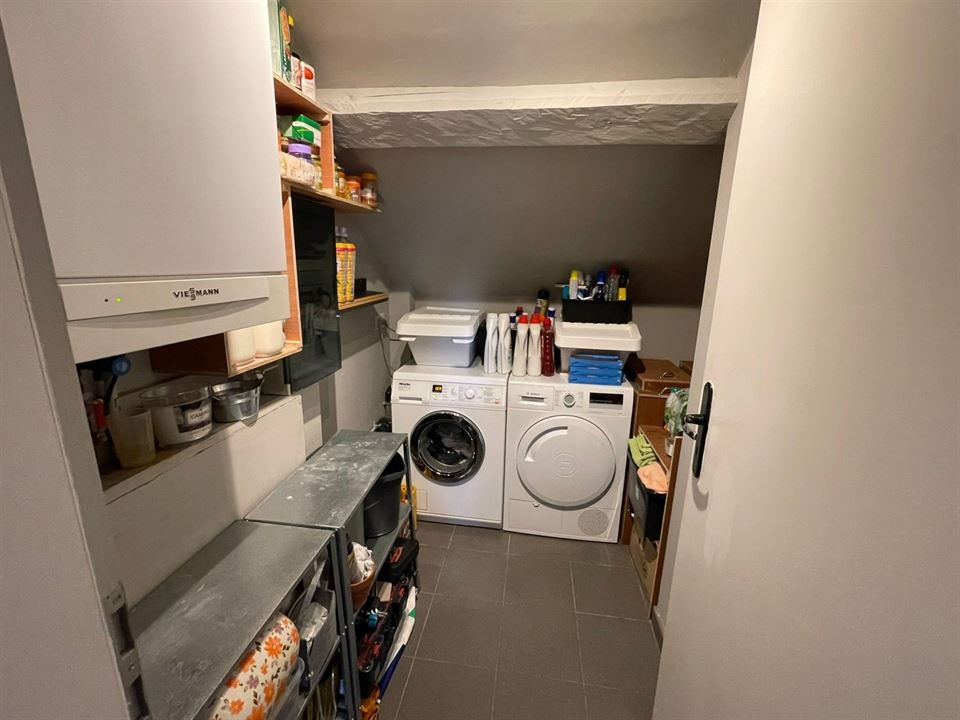 Il offre un hall d'entrée, un séjour lumineux avec cuisine équipée, un hall de nuit, une salle de bain (bain, WC et lavabo), une buanderie et deux chambres (± 18,5 m² et ± 8 m²), dont l'une aménagée en dressing. Emplacement de parking extérieur.
