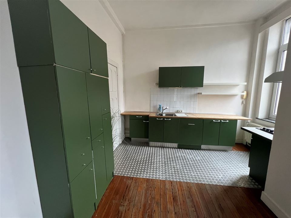 Il se compose d'une cuisine (meubles, évier, taques électriques, emplacement machine à laver), une salle à manger avec débarras et un salon.